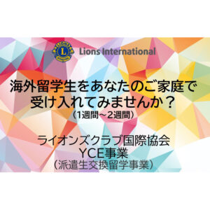 海外留学生をあなたのご家庭で受け入れてみませんか?(1週間~2週間) YCE(Youth Camp & Exchange) 派遣生交換留学事業とは、16歳から22歳までのYouth (若者)を 対象に各国のライ […]